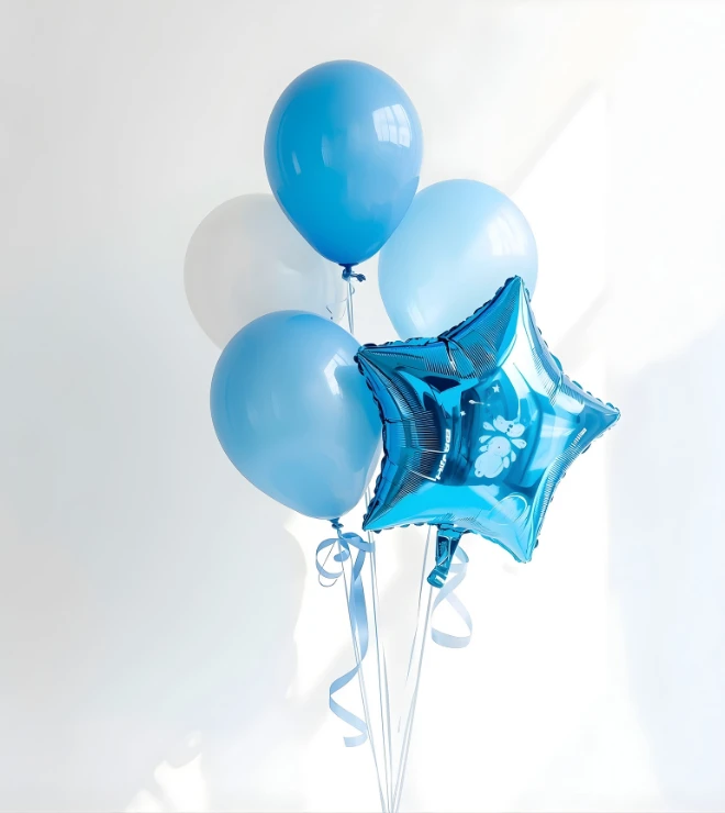 2 blue latex, 1 white latex, 1 metallic blue star foil